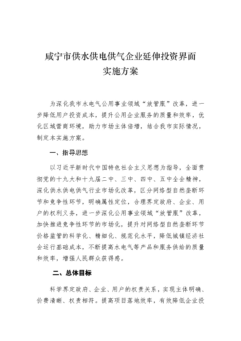 關(guān)于供水供電供氣企業(yè)延伸投資界面的實(shí)施方案